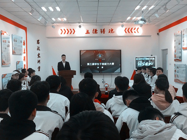 第三届学生干部能力大赛设置笔试、同学辨识、情景案例、主题演讲等环节。笔试涵盖学生管理规定、党团知识、专业知识等,考察学生干部对基本知识的掌握情况;同学辨识考察学生干部对班级同学的了解程度,体现学生干部的管理、服务意识是否到位;情景案例涉及寝室人际关系、校园贷、逃课等案例,考察学生干部沟通合作能力、随机应变能力和解决问题的能力;主题演讲考察学生干部的语言表达能力、逻辑思维能力等,展现工作成绩并对工作改进进行探讨。