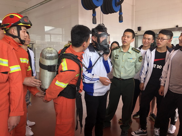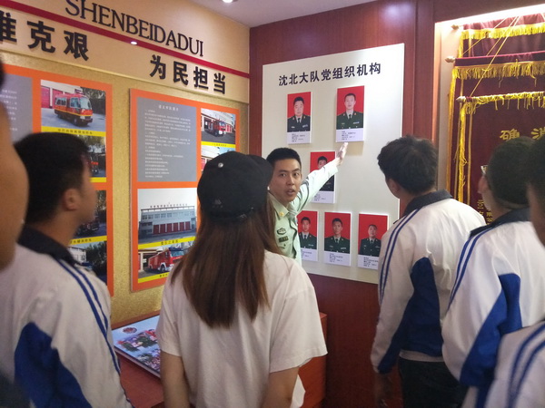 在武警沈北新区消防大队虎石台中队,同学们先后参观体验了消防装备、军营文化、官兵内务等,并与官兵亲切交流。军营的干净整洁、整齐划一令人震撼,部队官兵的良好形象、过硬作风使人折服,消防官兵冲火海、闯毒瘴、一心为百姓的无私奉献叫人赞叹……