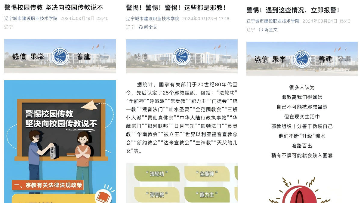 学校通过公众号发布警示教育宣传内容,扩大宣传覆盖面和影响力。同时,充分利用校园LED显示屏等循环播放警示教育视频,营造反邪教宣传氛围,增强师生识别、抵制邪教的意识和能力。