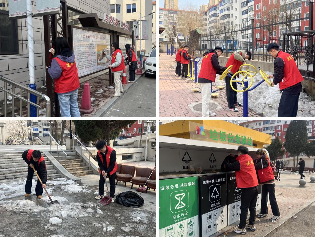 活动中,志愿者们身着统一红马甲,携带塑料袋、扫帚、抹布等工具,分组对社区主干道、绿化带、公共活动区域展开全面清洁。同学们分工协作、干劲十足,以实际行动传递温暖与责任,为社区环境美化贡献力量。