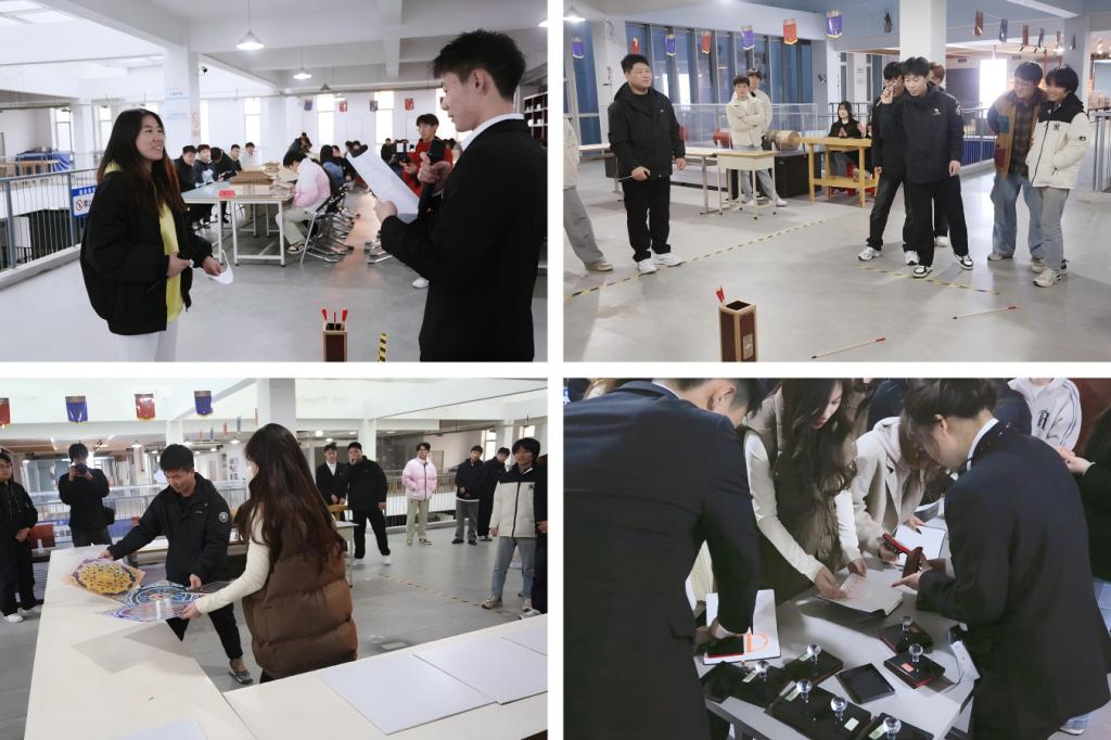 活动现场,学生们还积极参与了“地仗彩画知识快问快答”“地仗彩画图案消消乐”“地仗彩画虚实结合文创打卡”“投壶”等活动,进一步领略了古建筑地仗彩画这一传统技艺的独特魅力。