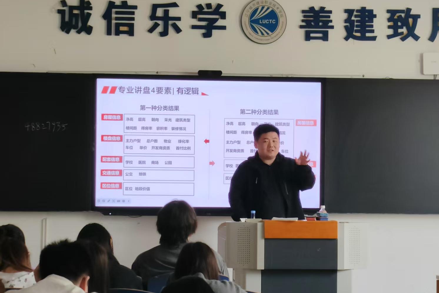 本学期订单班累计参与学生160人次。课程主讲由中原地产两名资深区域经理担任,聚焦《如何做好新房带看》《如何讲好一个项目》的核心内容,依托企业真实案例与岗位实际需求,切实提高学生营销技能。