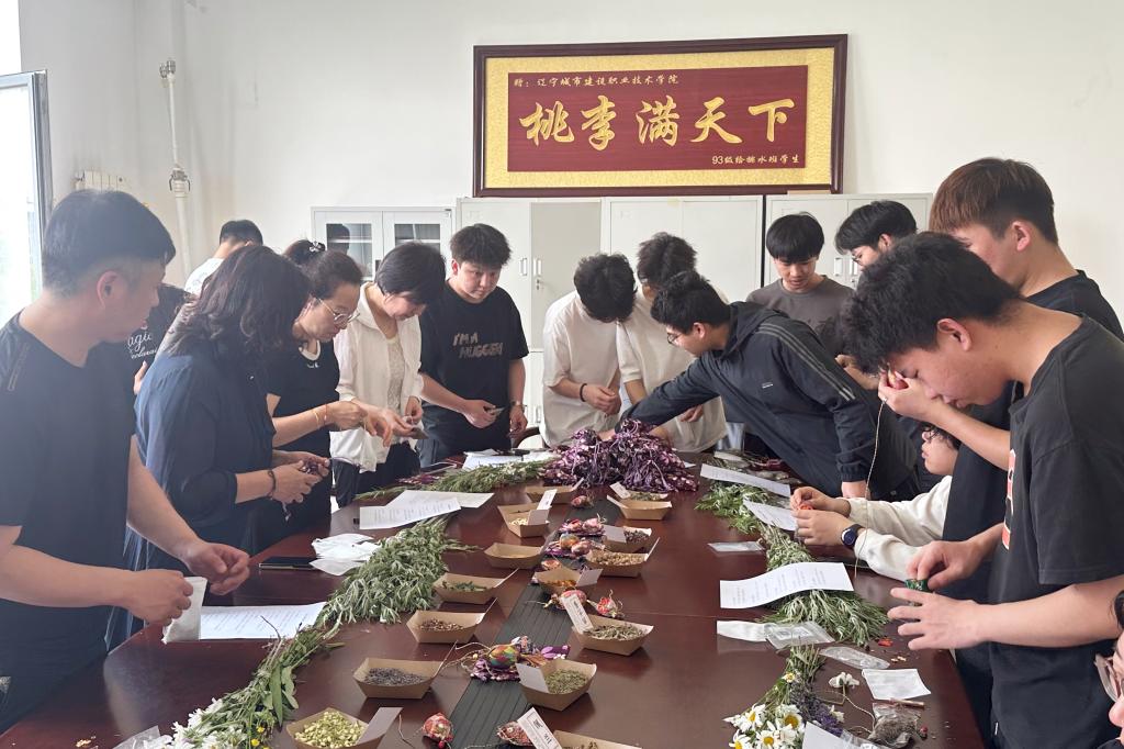 活动现场,在老师们的带领下,大家了解了端午佩戴香囊的习俗由来,以及各类中药材驱蚊防虫、提神醒脑的功效和药方搭配原理。师生们按照推荐药方或自行搭配,将艾叶、薄荷叶、丁香、佩兰等中药材装入香囊,相互交流制作技巧,欢声笑语不断。