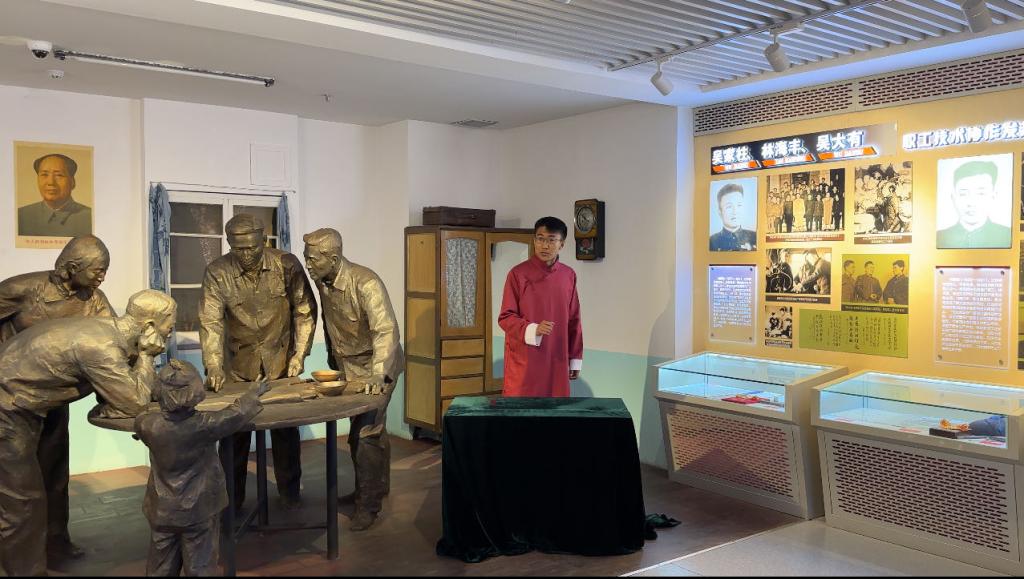 本次展览是解说与实景演出相结合的沉浸式教育实践活动,学生演员与职工演员共同用实景演出、评书表演、诗歌朗诵等方式为大家讲述劳模故事、沈阳故事、中国故事,全面展示各行各业劳动者锐意创新、建功立业的奋进姿态以及沈阳劳模工匠的光辉业绩和精神风采。新颖的“沉浸式”观展方式让同学们耳目一新,演员们用生动的表演将大家带入到一个个劳模工作的场景中。活动中,演员们通过多种形式的表演让同学们身临其境地感受到了劳模精神。