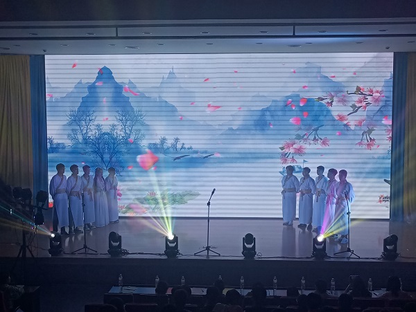 参赛支部和助演嘉宾表演了形式多样的古典吟唱诵读,18监理1班带来舞蹈歌唱表演《梦回汉唐》,18建工1班带来唱诵情景短剧表演《心中有梦想,繁花自盛开》,18建工5班带来唱诵演唱《青春的古韵旋律》,18检测1班带来的唱诵表演《塞上秋》,18建工3班带来的朗诵及歌唱表演《英雄魂》,18建工6班带来的舞蹈演唱表演《天盛长歌》,以及18建工2班带来的情景剧唱诵表演《大唐飞歌》等才艺,将才子佳人的风采展现给现场的观众,带来一场精彩绝伦的视听盛宴。决赛环节中,参赛支部在不同情调的背景音乐中,或辞情蕴藉,“白日不到处,青春恰自来”,或气象恢弘,“天生我材必有用,千金散尽还复来”,选手们古典服饰的挥动间再现着华夏文明的乐章。