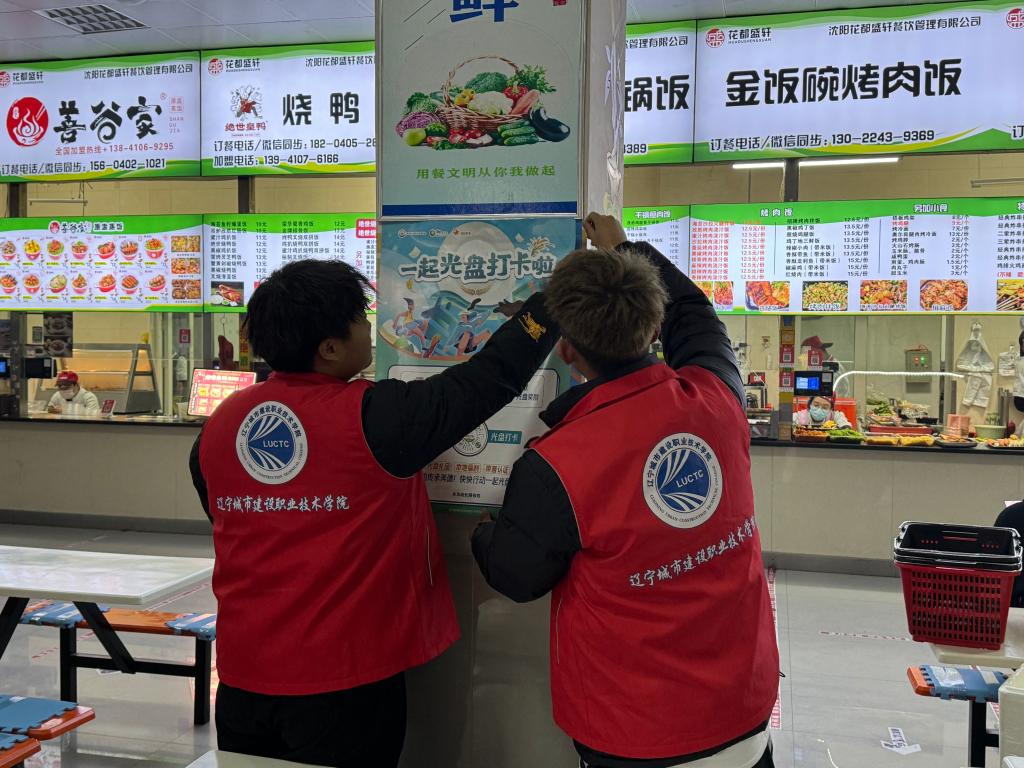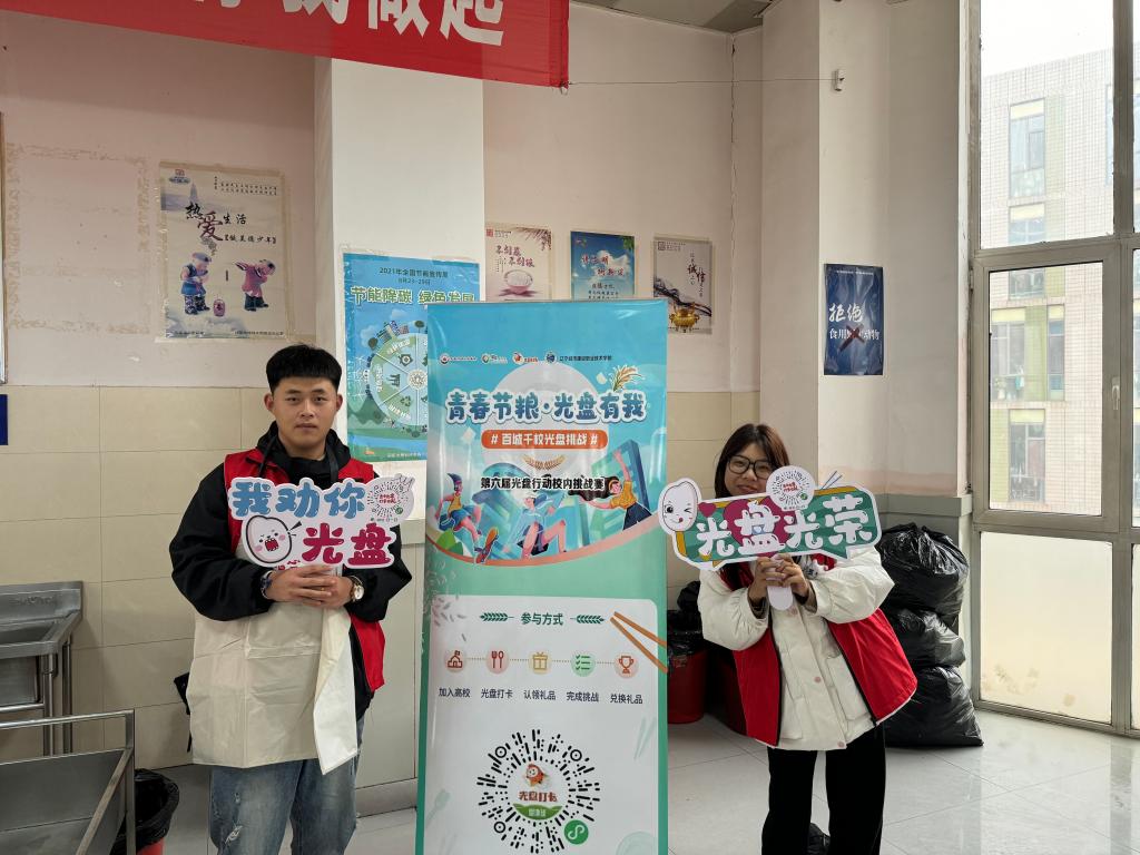 活动中,建筑设备系青年志愿者们在食堂窗口前、餐盘回收处、寝室公示栏等地方贴上光盘打卡活动海报和条幅,普及光盘行动的相关知识,让同学们了解光盘行动的重要性,同时在食堂二楼、三楼设立光盘打卡活动台,并由志愿者们对本次活动进行宣传。