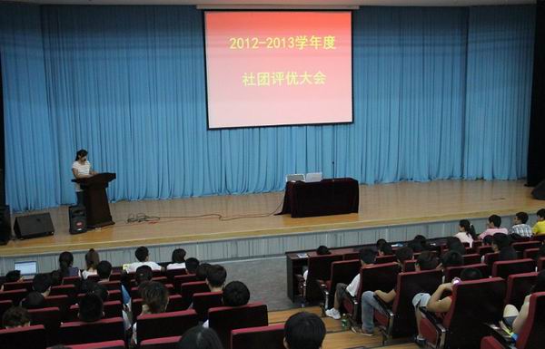 6月19日,我院举行2012-2013学年度社团评优大会,团委书记陈越出席大会,来自36个社团的200余名社团成员代表到场参加。