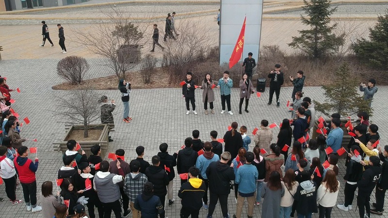 2019年3月7日中午,建筑与环境系在学校时钟广场开展了“祝福祖国,唱响城建”主题快闪活动。