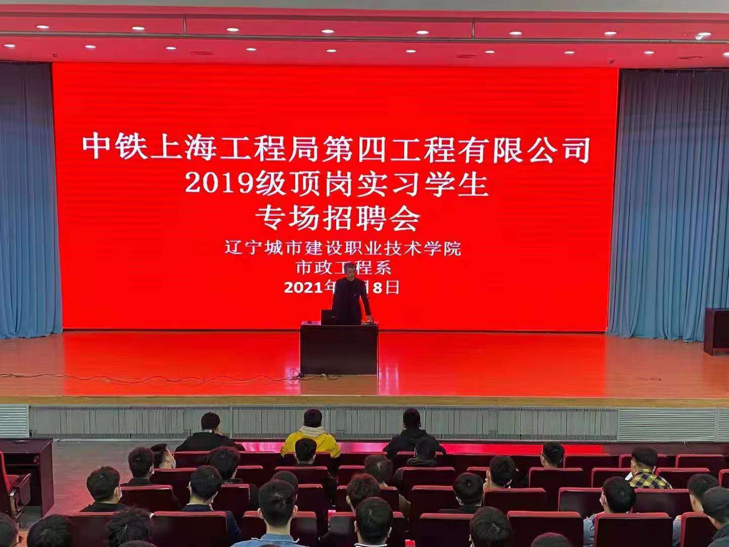 中交天津港湾工程研究有限公司、中铁上海工程局第四工程有限公司、中建一局华江建设有限公司、辽宁恒睿测绘有限公司、辽宁众诚勘测有限公司等企业陆续到校作专场宣讲招聘,提供岗位近200个,实际录用120余人。