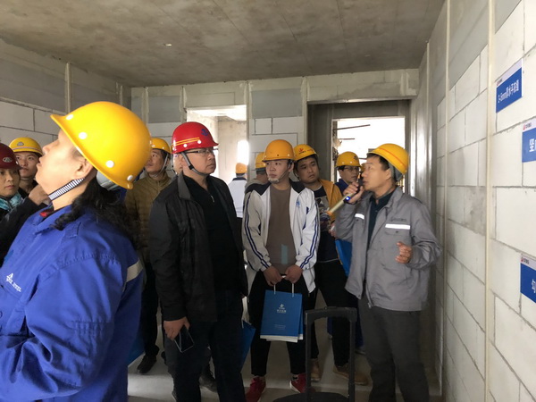 本次实体工程项目为中天建设集团有限公司总承包施工的金地艺镜2.5期项目。该项目广泛运用BIM技术,对11项、33类、82个点进行深化设计。项目负责人向师生详细介绍了项目整体概况及建设目标,施工处负责人重点讲解了项目利用BIM+VR、BIM+AR、虚拟样板对项目施工进行指导、可视化安全技术交底、分部分项工程检查的流程要点,帮助同学们全面深入了解BIM技术在施工过程中的应用。中天人的工作热情和浓厚的企业文化氛围也让广大师生感触颇深,为他们提供了良好的就业参考。