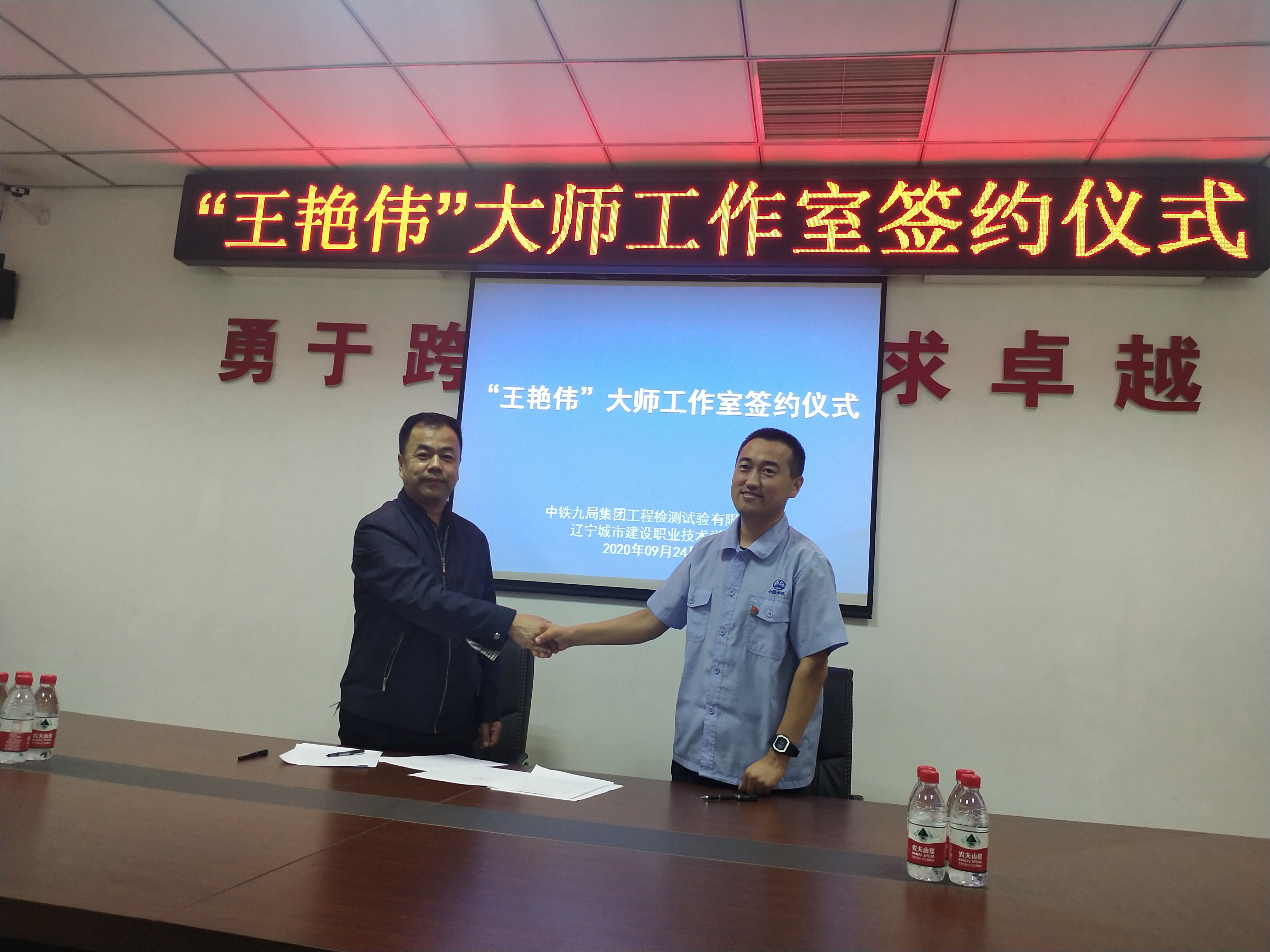 为更好地开展校企合作,提升土木工程检测技术专业办学能力和水平,强化校企深度融通工作。9月24日,我院建筑工程系主任刘玉波和检测教研室主任尹国英带领检测教研室教师、辅导员到中铁九局集团工程检测试验有限公司,成功组织完成"王艳伟”大师工作室的签约仪式。刘玉波主任与王艳伟总经理就下一步的校企文化对接、学生订单定制培养、学生实习就业管理、校企携手参赛及公司卓越校友回校交流等工作进行深入研讨,并达成了一致意见。
