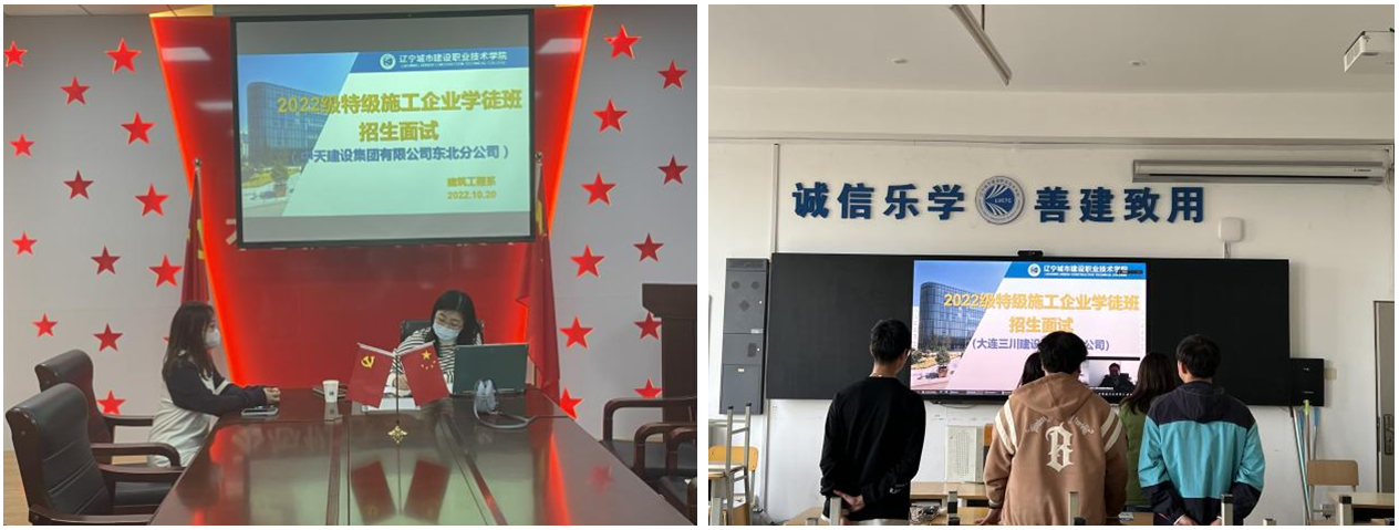 选拔会上,中建城市建设发展有限公司、大连三川建设集团有限公司、中天建设集团有限公司东北分公司、沈阳北方建设股份有限公司等企业负责人为同学们介绍了企业概况、培养模式、岗位职责、未来发展等特级施工企业学徒班相关情况,使学生对现代学徒制培养模式以及合作企业有了更详细、更深入的了解。