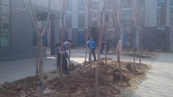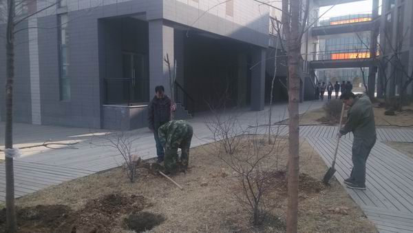 为美化校园,4月2日,后勤处在教学楼中庭院密植绿化,栽种各类乔木120棵,灌木600株,校园环境得到进一步提升。