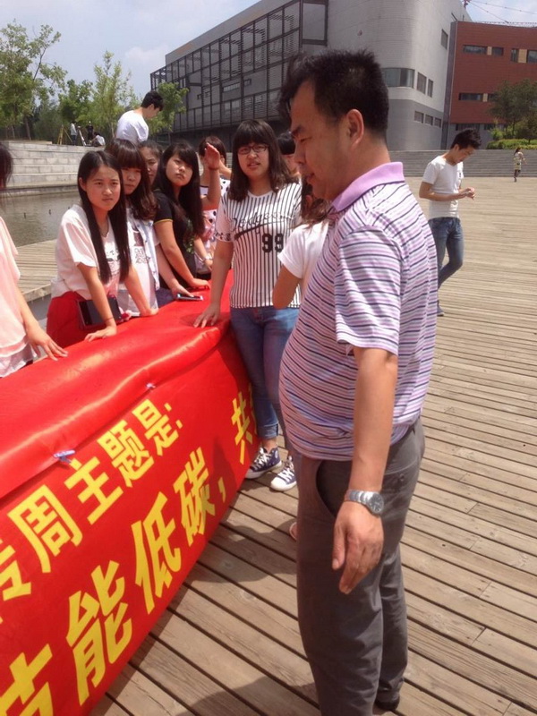 此次活动主题是“携手节能低碳,共建碧水蓝天”。在活动期间,以倡导绿色、节能、低碳环保的生活方式、消费模式和生活习惯为宣传重点,通过签名活动、校园广播、网站报道、悬挂条幅等形式增强了广大师生资源忧患意识和节约意识,对建设节能环保校园起到了积极的促进作用。