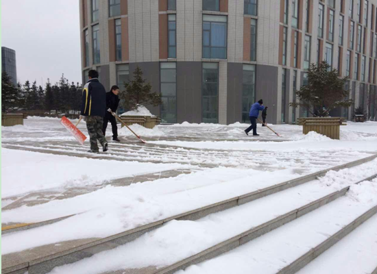 11月29日,沈阳首降中雪。30日,后勤处组织处内职工,包括维修班人员、保洁人员进行了园区除雪工作。