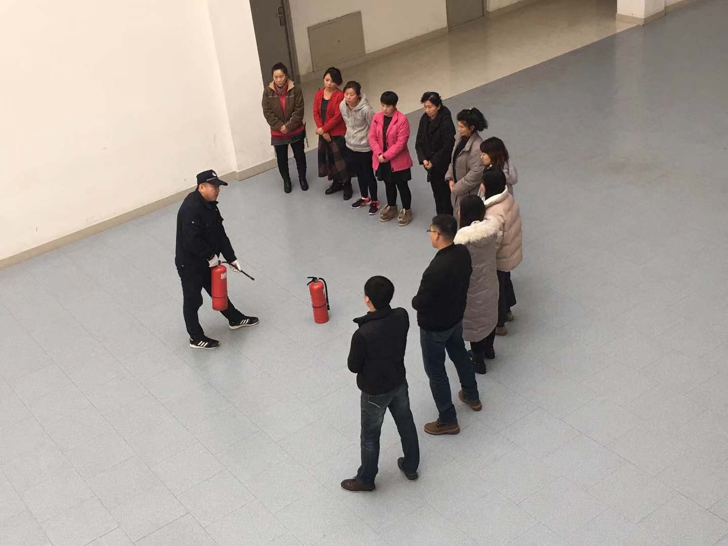 12月21日,保卫处联合学生处对学生公寓老师进行灭火器使用培训。