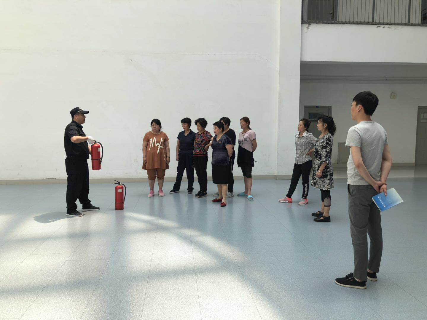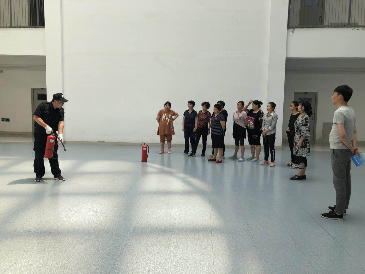 6月26日,保卫处联合学生处对学生公寓老师进行灭火器使用培训。