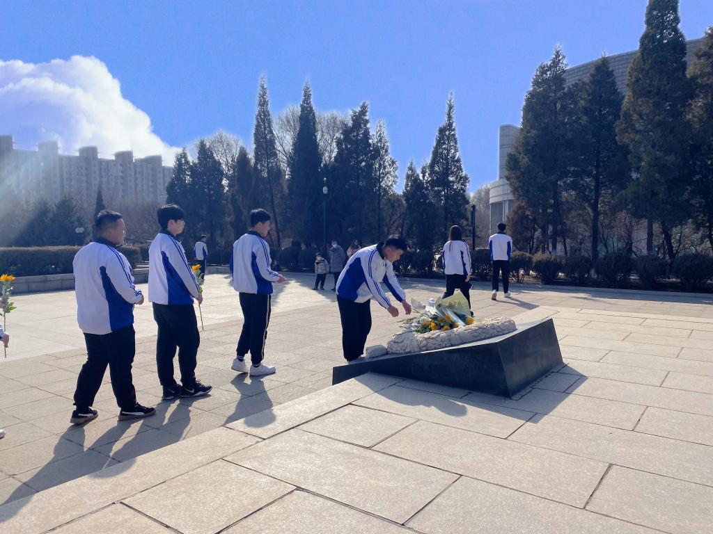 在团委书记齐振军的带领下,同学们怀着崇敬的心情走进雷锋纪念馆,瞻仰雷锋塑像并献上鲜花。