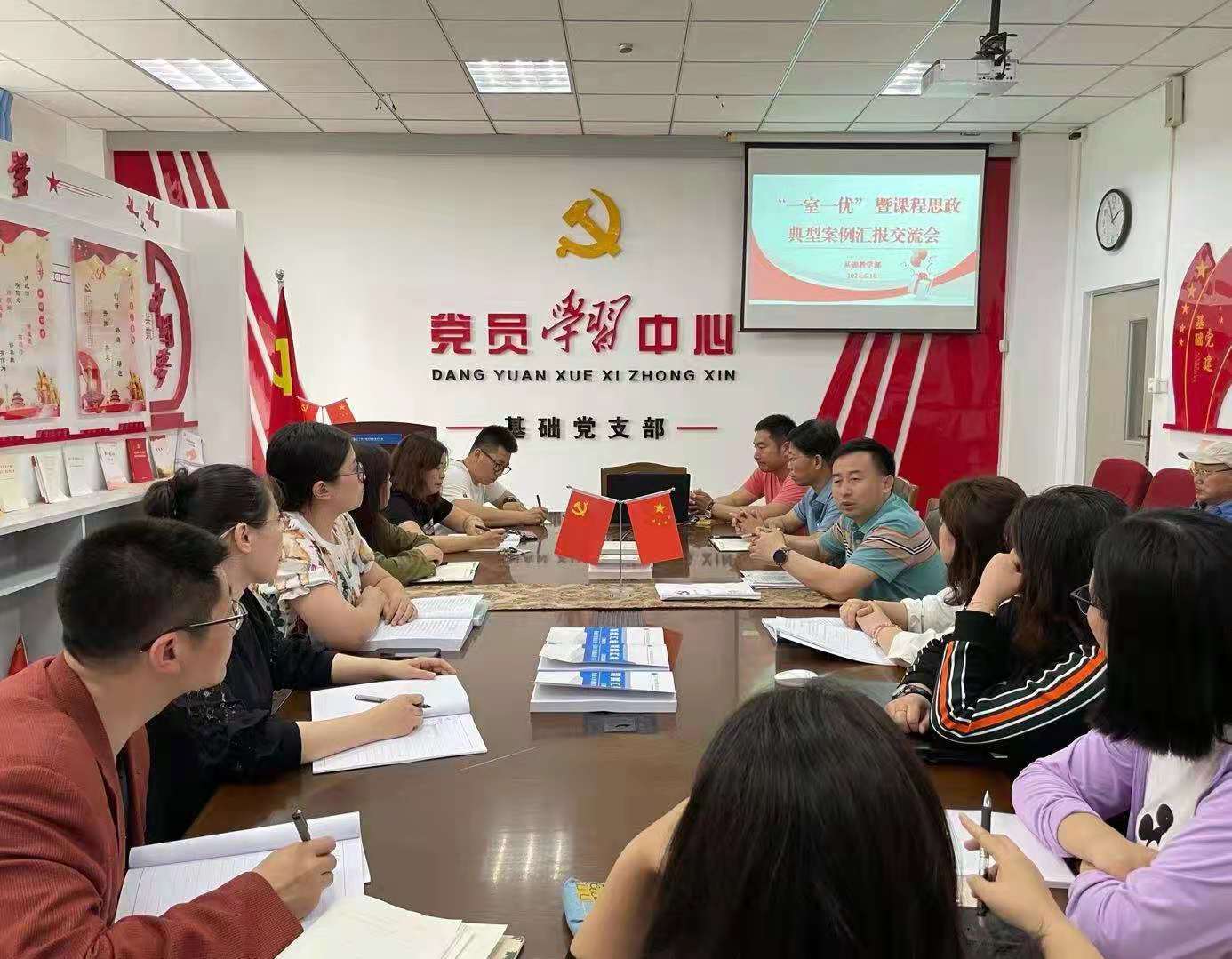 为进一步贯彻落实全国教育大会精神,积极响应并落实学院推进课程思政教育教学改革相关要求,探讨课程思政融入公共基础课程的方法路径,为参与省级案例评选做好前期储备,6月10日下午,基础教学部在教学楼B324组织召开了“一室一优”暨课程思政典型案例汇报交流会,部门全体专兼职教师参加,会议由李长友主任主持。
