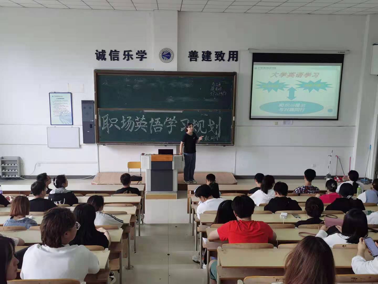 6月17日下午,由我院基础部英语教研室举办的职业英语学习规划讲座在阶梯202教室举行。英语教研室刘莹主任以“从学生党到上班族——职业英语学习规划”为题,介绍了适合大专起点的社会实用类英语考试和备考策略,并与在场的同学们进行了互动交流,解答了同学们在英语学习过程中遇到的困惑和难点问题。本次讲座是在我院20级学生刚刚结束全国高校英语应用能力四六级、AB级考试背景下进行的,旨在进一步激发学院学生的英语学习兴趣,帮助其提前规划下一步英语学习方向,以此提升学生未来职场下英语实用能力和就业竞争力。