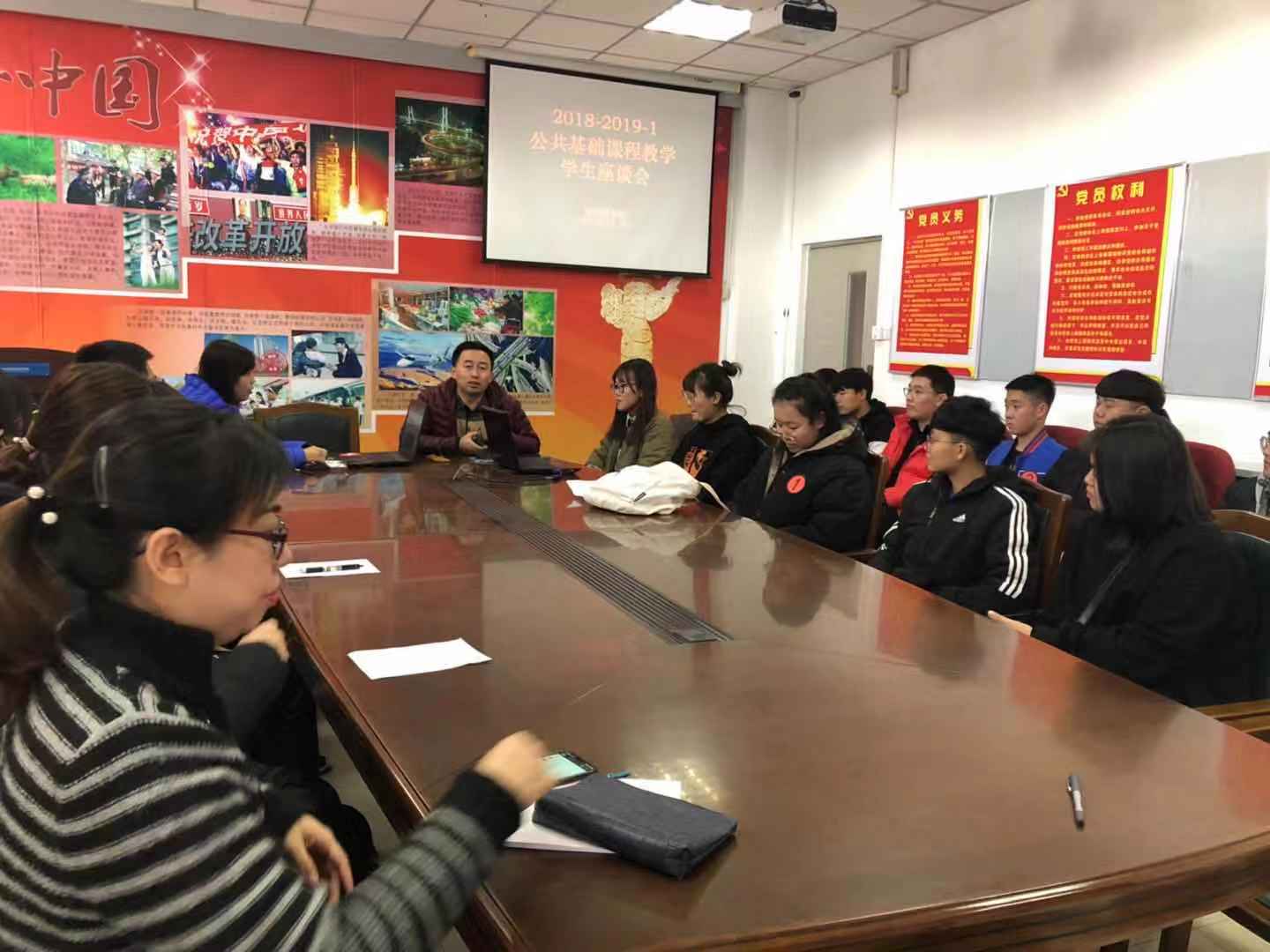 座谈会伊始,李长友主任首先明确了召开此次学生座谈会的目的和意义。他指出,本次学生座谈会是对部门教学、服务反馈的一个重要手段之一,目的是听取学生对学院公共基础教学、管理、服务等各方面的意见和建议,进而不断改进教学方法和育人能力水平,为学生健康、快乐、高效的学习奠定良好基础。座谈会在平等、轻松、开放的氛围中进行,与会学生代表对入校以来的学习生活状况和与会教师进行了交流,提出了一些在学习生活过程中遇到的各类问题,也对今后公共基础课程教育教学提出了一些很好的意见和建议。与会教师详细记录仔细倾听,并针对绝大部分问题进行了现场解答。