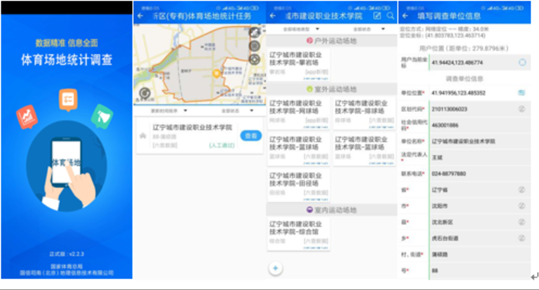 本次普查是在在院领导的关心支持下,由基础教学部牵头,院党政办公室、资产处等部门全力配合共同完成。本次上报是通过手机APP进行的,其中包括了我院文体馆、田径场、篮球场、排球场及拓展训练场的坐标定位、场地面积、建成时间、投资情况、场地数量等相关信息。截止目前,学院上报的各项数据已经正式通过审核。
