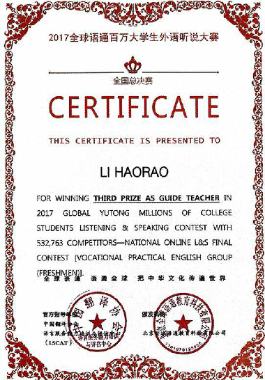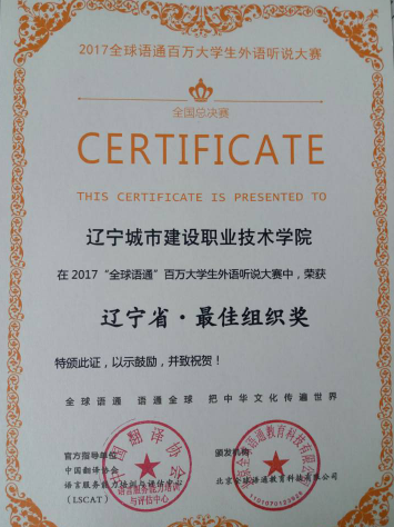 近日,第二届全球语通百万大学生外语听说大赛全国总决赛落下帷幕,我院荣获辽宁赛区“最佳组织奖”。建筑系17室内班蔡小兵同学获得全国高职高专新生组三等奖。刘莹、李好娆老师获得大赛优秀指导教师。