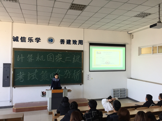 2017年11月3日下午1:30时,以“国家计算机二级考试应试策略分析”为主题的讲座在教学楼阶梯402教室召开,我部计算机教研室章硕老师担任主讲人。