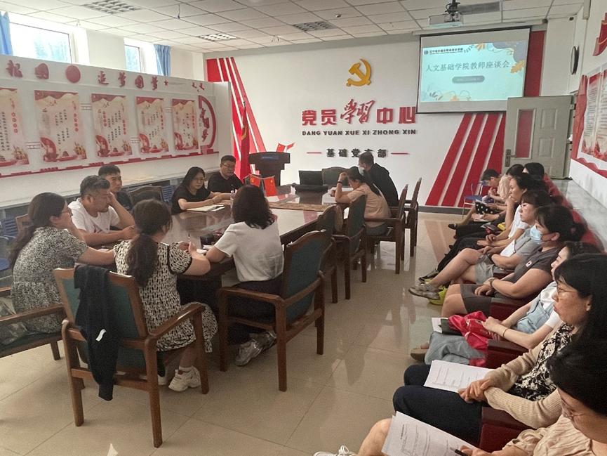 王艳东认真听取了大家的发言,同大家进行了热烈的交流,并对人文学院的工作给予肯定。她强调,人文基础学院要坚守为党育人、为国育才的初心,紧紧围绕立德树人根本任务,结合建设类专业学生实际,紧扣教学质量提升核心,强化课堂教学改革和课程思政,打好学生人文底色,不断提升学生的综合素养与核心竞争力。最后,她勉励大家立足本职、务实工作,争当“四有好教师”,做好“四个引路人”,大力弘扬教育家精神,为学校高质量发展作出自己的贡献。