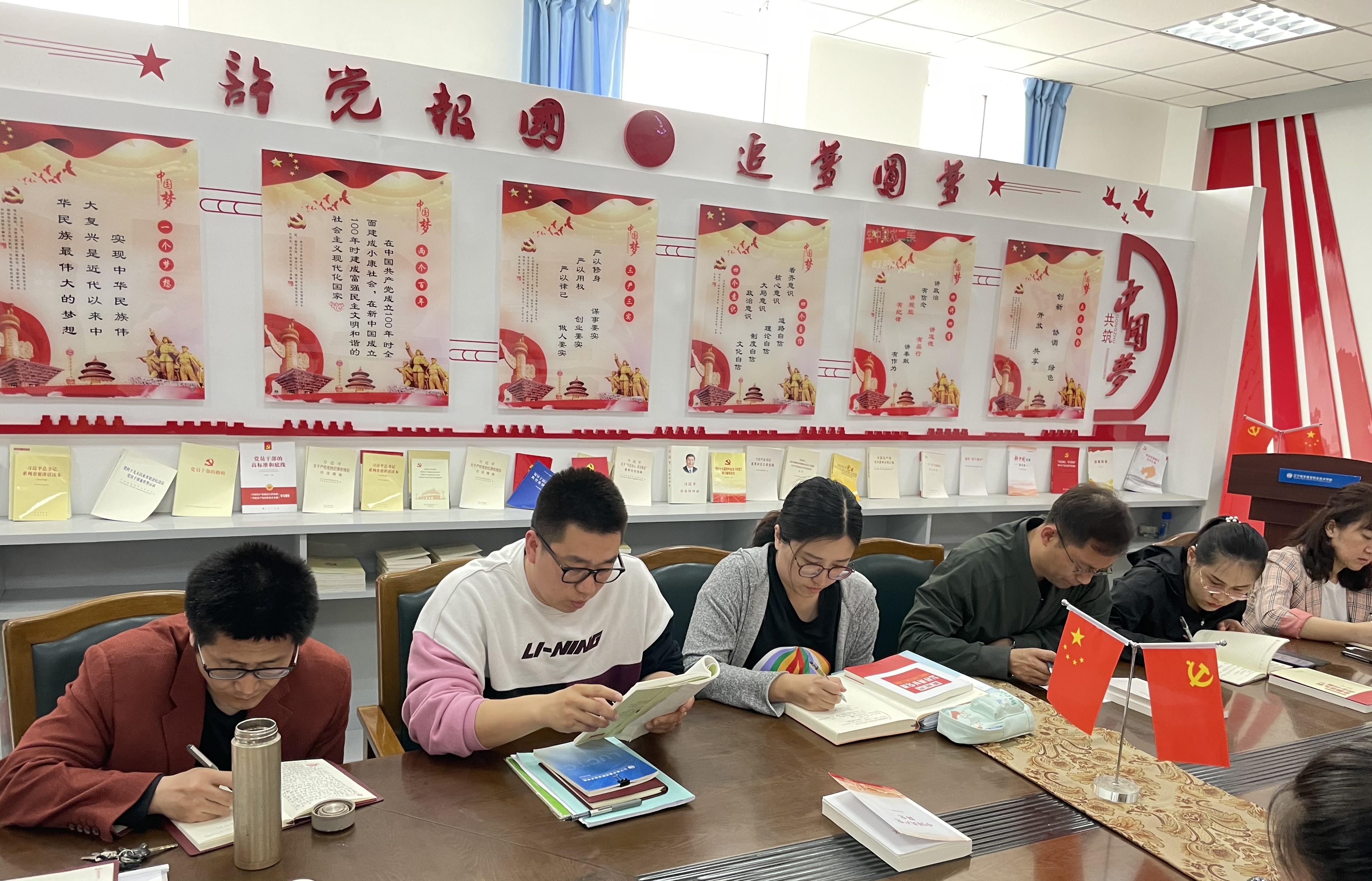 党小组组长丛国凤和隋晓峰分别领学了《中华人民共和国简史》和《中国特色社会主义为什么好》书目中的重要章节内容。围绕领学内容,与会8名党员教师进行了交流讨论,分享了学习心得。