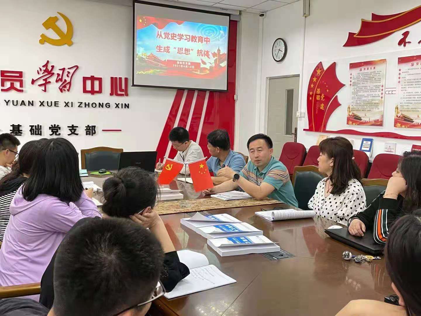 为深入推进党史学习教育,扎实落实“三会一课”制度,引导党员教师守好“意识形态”阵地、主动接受党性教育和思想政治引领,6月10日下午,基础党支部在教学楼B324组织开展了“支部书记讲党课”活动,支部全体党员教师参加,活动由宣传委员刘莹主持。