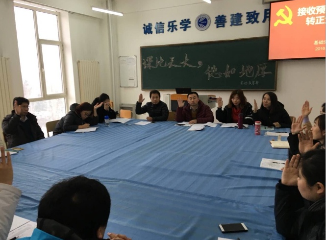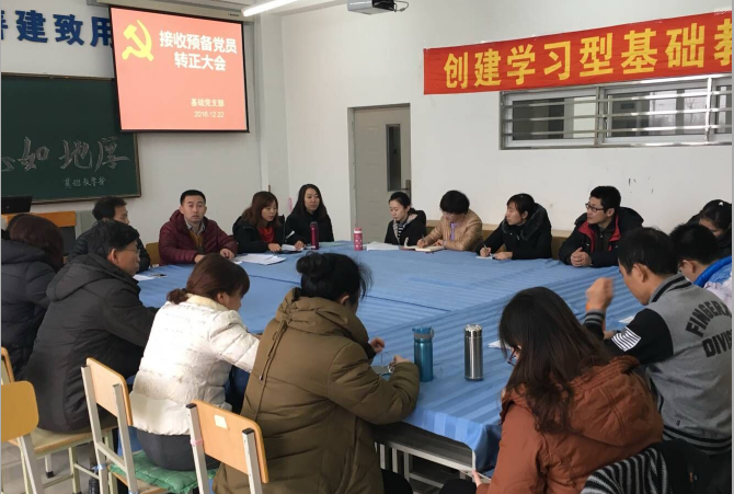12月22日下午,基础党支部在A227组织召开了预备党员转正大会。本次大会按期转正的预备党员共2名。支部全体党员参加会议,会议由刘莹支委主持。