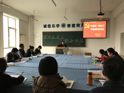 会上,李长友主任对“讲道德,有品行”专题内容做强调时指出:做一名真正合格的党员教师,不仅要做到明大德、守公德、严私德、行美德,而且要坚持把“讲道德、有品行”这一标准贯穿融入到日常工作生活中,既要勤奋干事,更要善于谋事,要把强化道德修养融入点滴小事,真正将“讲道德,有品行”落到实处,用实际行动践行“学高为师,身正为范”为师之本。