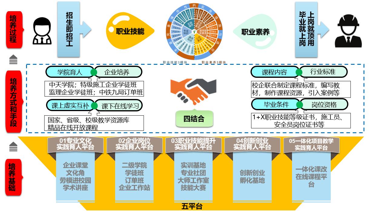图1 建筑工程技术专业“五平台、四结合”人才培养模式