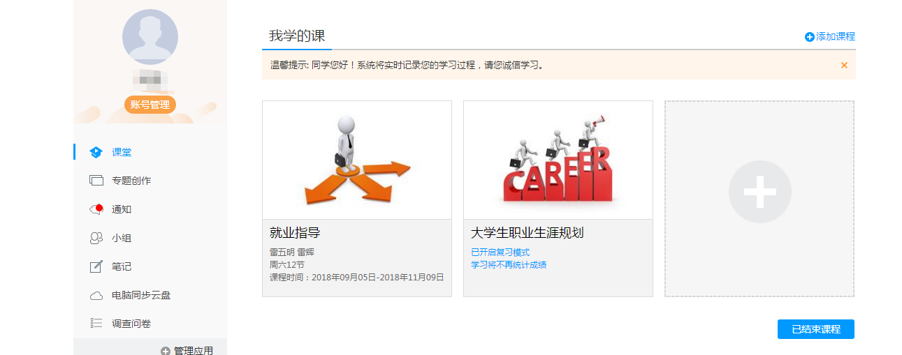 验证后进入app首页,点击首页上方课程,可看到需要学习的课程