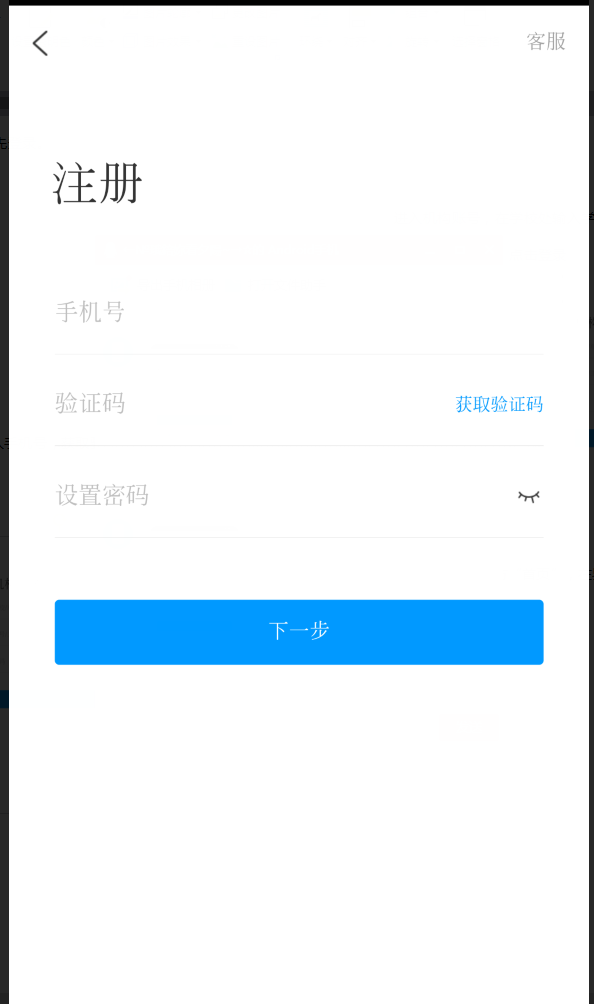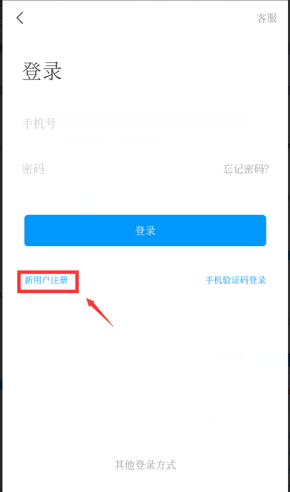 进入登录界面,点击下方“新用户注册”,进入后输入手机号,获取验证码,设置密码