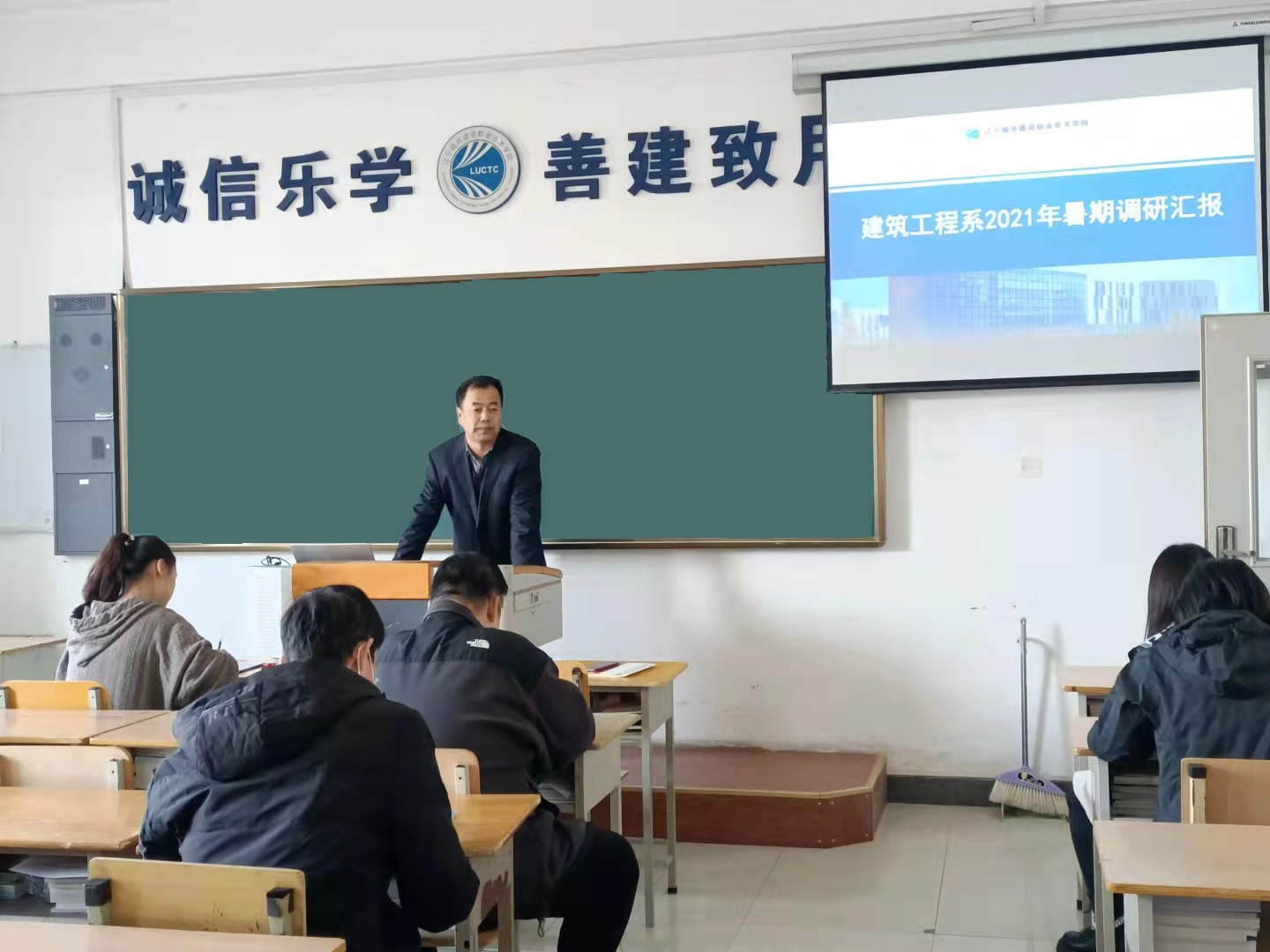 21日下午建筑工程系在A412教室召开了2021年暑期专业调研汇报会,会议由刘玉波主任主持,全系教师参加了本次会议。