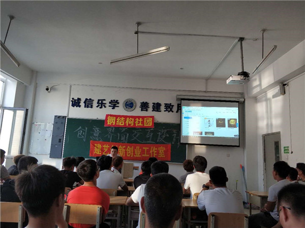 2018年9月13日,钢结构社团在教学楼B418举办“创意界面交互设计”主题活动。由社长程锐组织并主讲了如何将Html5技术以一种新型的视觉效果实现设计者的构想,并应用于工作与生活之中。