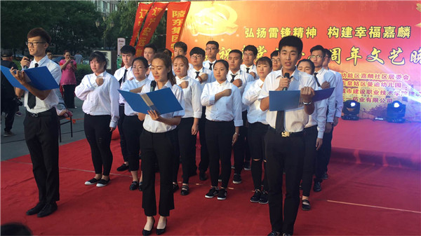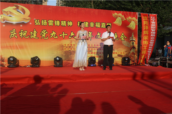 6月22日,KY开元集团官网入口建筑工程系与北塔街道嘉麟社区共同举办“弘扬雷锋精神 构建幸福嘉麟”庆祝建党九十六周年文艺晚会,建筑工程系党总支副书记周扬,辅导员陈小曦参与了本次文艺晚会。