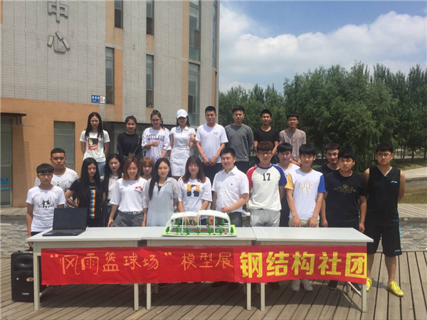 2017年6月22日,钢结构社团在我院露天舞台举办“风雨篮球场”模型展活动。本次模型展邀请了团委黄书记、岳老师,建筑工程系刘鑫主任、刘丽副主任、周扬副书记及多位专业教师参加。