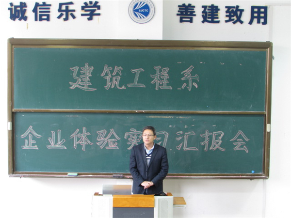 企业体验实习结束后,按照惯例,各个班级在指导教师的带领下分组完成实习总结,并在班级选拔优秀小组代表班级在全系师生面前汇报。汇报会上5名选手依次上台演讲,各位选手大显身手,有的以相声形式博得满堂喝彩,有的以施工事故的沉痛教训发人深思,有的将监理的重要性上升到家和万事兴,现场气氛热烈。