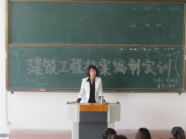 为更好的培养学生实践能力,实现毕业就上岗,上岗就顶用的培养目标,建筑工程系与企业合作成立了工程档案工作室。工作室聘请宫树芬老师作为企业专家讲师,于2016年9月22日下午3:30在阶梯401召开了工程档案工作室成立大会暨工作室首次活动。出席本次活动的有建筑工程系刘鑫主任,企业专家宮树芬老师及档案工作室校内负责人沈雪晶老师。 工作室经过纳新宣传共有132名女同学报名。经过两轮筛选,选定19名学生成为首批成员。在档案工作室成立大会上,刘鑫主任做了重要讲话,并为同学们讲解了工作室的职能以及管理要求。企业专家宫树芬老师对工程档案室的工作进行细致的讲解,同时带来紫提东郡小区分户验收实际工程项目。带领工作室成员全面深入的讲解如何规范填写分户验收记录,并完成该项目。