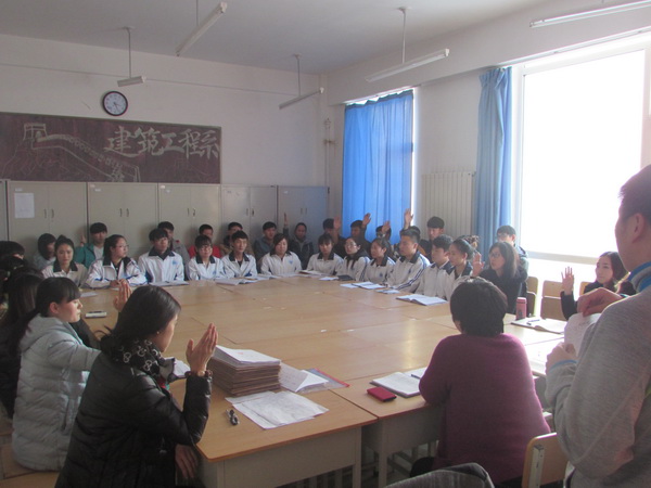 2014年12月11日建筑工程系学生党支部在教学楼A433教室召开接收新党员支部审查大会,全体党员和拟发展的张贺宁等17名同学参加了会议,会议由学生党支部书记周扬主持。 首先,周扬同志宣布开会并宣读了拟发展学生名单,这17名同学是由辅导员推荐、团支部推优、征求党内外同志意见等多个环节而确定的12级和13级学生中的佼佼者。他们经过学院党校的培养、教育,端正了入党动机,提高了对党的认识,有迫切地加入党组织的愿望,在学习生活中,能够按照党员的标准严格要求自己,在学生中起到先锋模范作用,学生干部工作任劳任怨,尽职尽责,实践着全心全意为人民服务的党的宗旨。支部大会上,与会党员对17名拟发展对象是否具备预备党员的条件进行了认真的讨论,经举手表决,一致同意接收张贺宁等17名同学为中共预备党员。