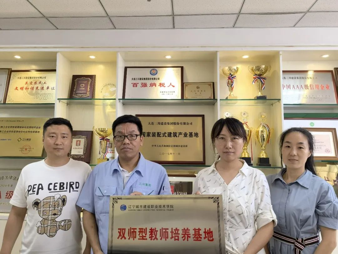 为进一步推进学院兴辽卓越专业群建设,提升专任教师岗位职业能力,建立健全“双师型”教师培养制度,打造“双师型”教师队伍,2022年暑期我系与大连三川建设集团股份有限公司、大连德泰三川建筑科技有限公司等企业举行“双师型教师培养基地”挂牌仪式,并安排多名专任教师赴企业观摩学习装配式相关知识。