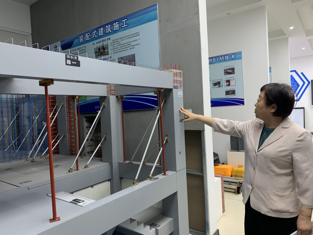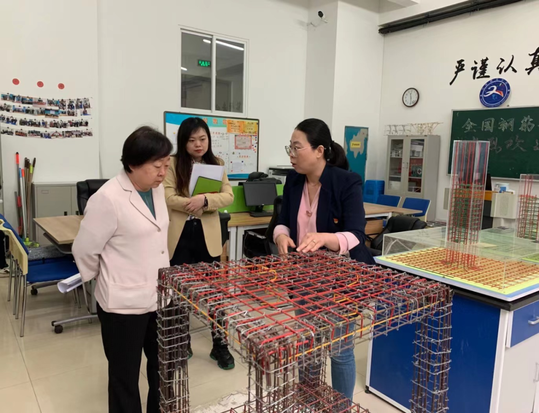 高玉英参观了BIM创新创业工作室、装配式实训基地、钢结构社团、识图精英社团和臻源档案社团等,听取了刘丽对实训基地、专业社团发展和日常工作的介绍,并与学生深入交流,结合自己的人生阅历和经验为学生指引前进方向。
