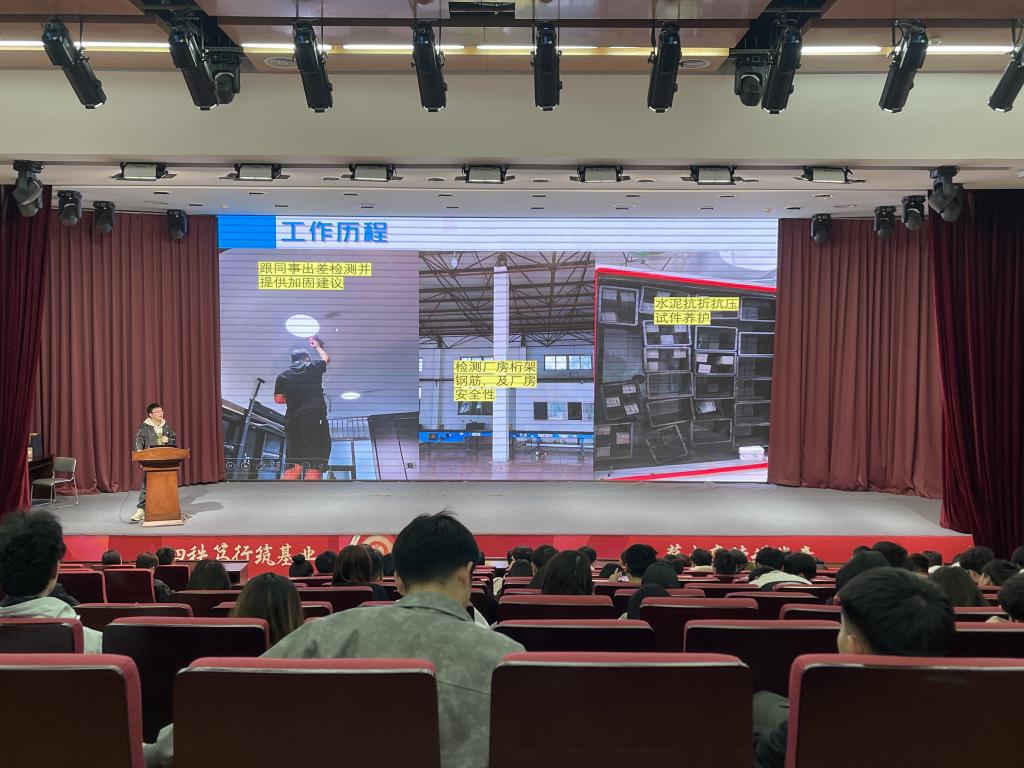 活动邀请建筑工程学院往届毕业生优秀代表,从施工、质检、安全、监理、资料等多个岗位的角度为同学们作岗位宣讲。宣讲内容涵盖了建筑行业的发展趋势、各岗位的工作内容、职业规划与发展路径等多个方面,通过身边故事和真实案例,激发了同学们对建筑行业的热爱和对未来职业的期待。
