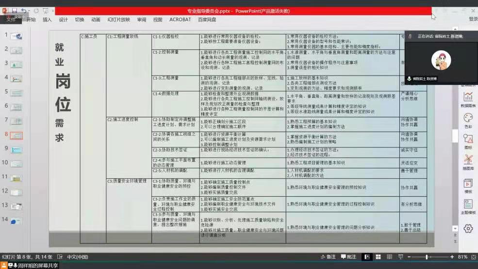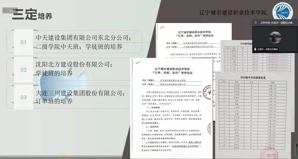 2021年1月15日下午13:30分,建筑工程技术专业以线上网络会议的形式召开了建筑工程技术专业指导委员会。会议由建工教研室主任周祥旭主持,参加此次会议的校方人员有建筑工程系刘玉波主任,吴佼佼副主任和建筑工程技术专业全体教师,企业专业人员有辽宁省建筑设计研究院岩土有限责任公司测量处处长陈姿博、中天建设集团有限公司东北分公司技术经理韩正恳、辽宁省送变电工程有限公司技术负责工程师李宝宇、沈阳北方建设集团股份有限公司总经理任成华。