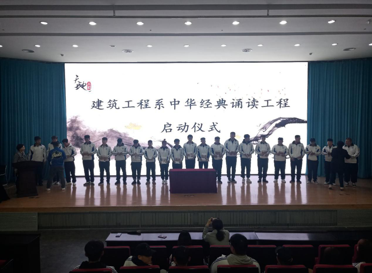 10月14日,建筑工程系在学院报告厅举行了中华经典诵读活动启动仪式。建筑工程系党总支书记罗爽出席了活动、辅导员王琛主持了会议。