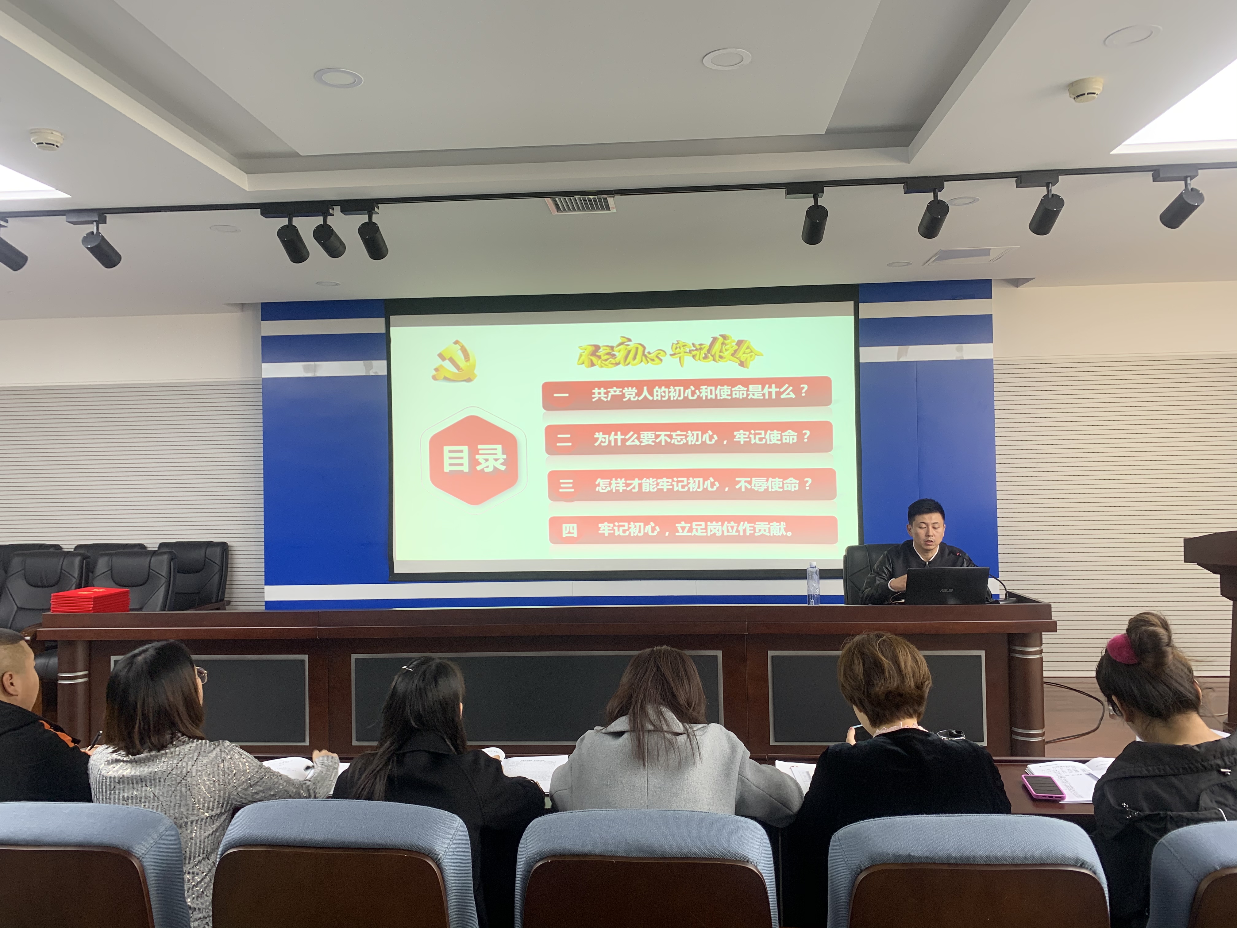 竞赛前,学生党支部书记周扬结合主题教育的开展给支部全体党员上了题为“不忘初心,牢记使命,立足岗位做贡献”的主题党课。他从守初心担使命;为什么要不忘初心,牢记使命;怎样才能牢记初心和不辱使命;立足本职岗位做贡献四个方面进行了讲解。