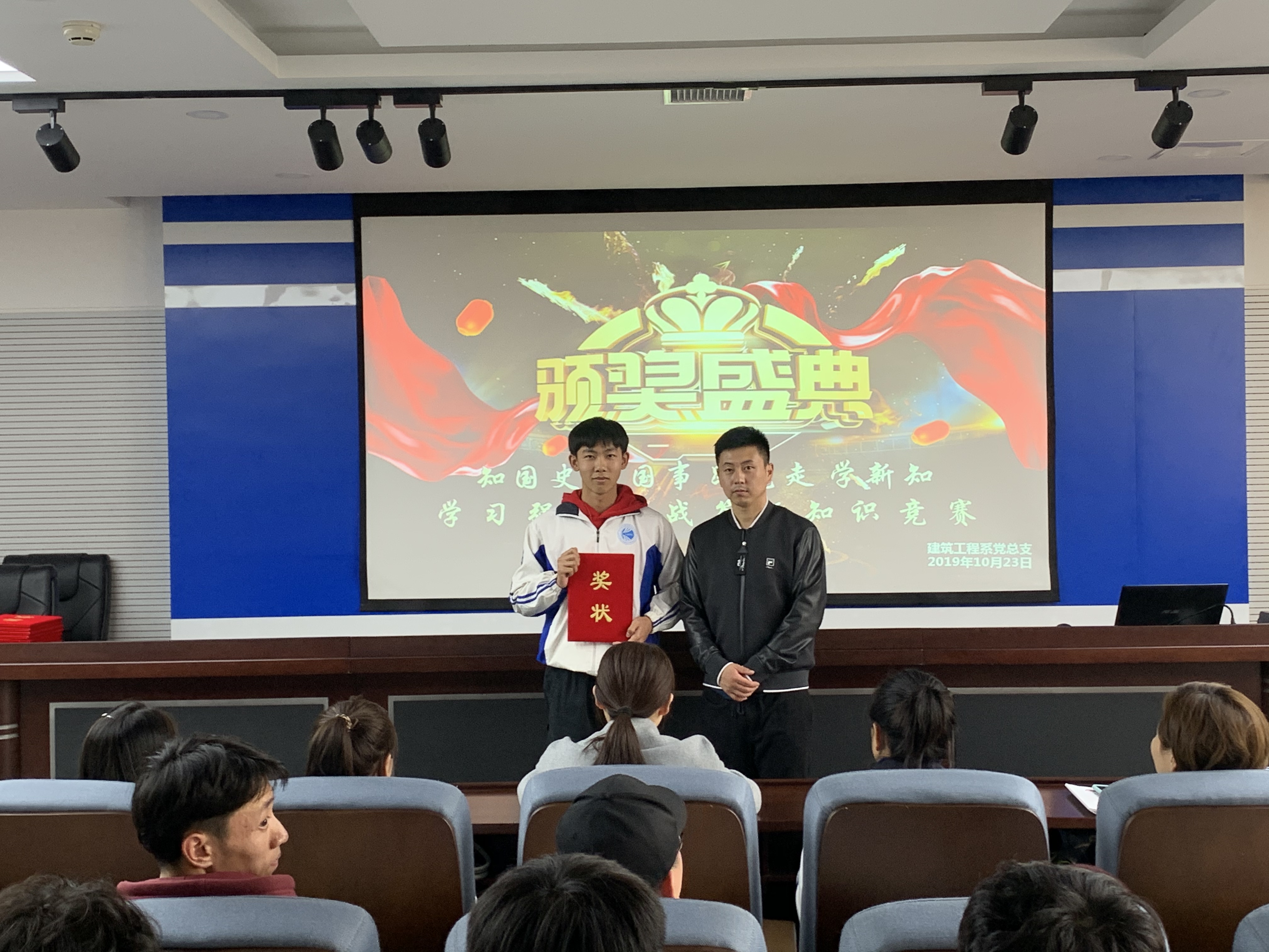 全体党员同志和43期44期党校结业学员认真聆听了党课,党课结束后,紧张而激烈的学习强国挑战答题知识竞赛开始了。参加本次知识竞赛的有建筑工程系党总支副书记周扬、各位辅导员老师以及43期、44期党校结业学员,报名参赛共134人。比赛共分为初赛和决赛,均从“学习强国”学习平台每日答题、每周答题、专项答题等题库抓取整理而成,题目内容覆盖面广,既有习近平新时代中国特色社会主义思想、习近平总书记重要论述等,又广泛涉猎及百科知识。赛场上各位选手严肃认真,争分夺秒,都表现出过硬的政治素养和超强心理素质,在限时五分钟之内交出了自己的答卷。最终,18建工1班顾倬丞以22道题勇夺桂冠,支部书记周扬和李岩同学分获亚军和季军。